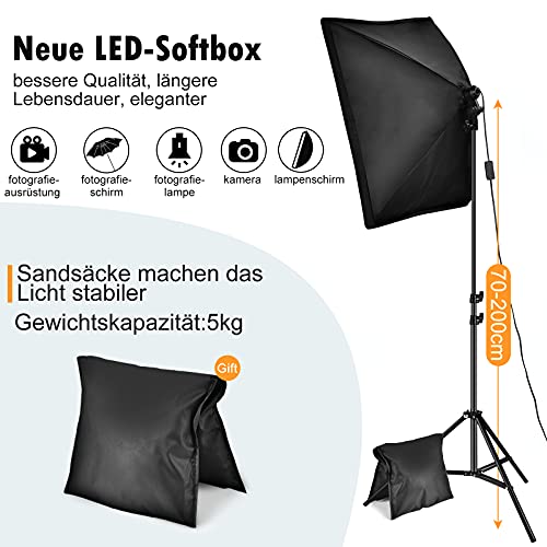Multifunktionales verstellbares Lichtstativ: Die Softbox kann um 210°gedreht werden; Das hochwertige Lichtstativ die Gesamtheit Aluminiumlegierung wiegt bis zu 800g, einstellbare Höhe reicht von 70 cm bis 200 cm, was stabiler und zuverlässiger denn andere Stative auf dem Absatzgebiet ist! Stabiles 3-Bein-Design, starkes Verriegelungssystem und 2 Sandsäcke sollen helfen, das Stativ weiter zu sichern; Einfach zusammenzufalten und aufzubauen