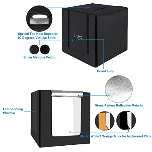 2. Helligkeitsdimmer und kein Stroboskop-Fotostudio-Box: Der Helligkeitsdimmer ermöglicht es Ihnen, den Lichteffekt besser zu steuern. Kein Stroboskop, so dass Sie hochwertige Bilder in verschiedenen Hintergründen mit iPhone, Smartphones, Kameras absorbieren können.