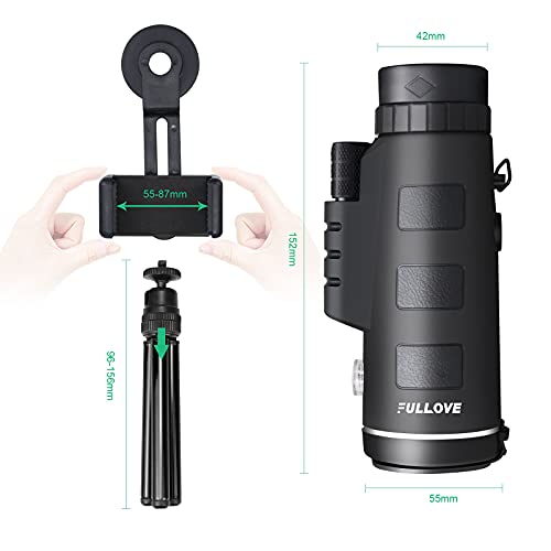 【Metallstativ & Handyhalter】 FULLOVE Monokular Teleskope ist nicht im Gegensatz dazu ein Teleskop, es kann mit einem Handyhalter verwendet werden, um Bilder und Videos mit einem Handy aufzunehmen. Handy objektiv adäquat für iPhone 11/XR/Xs/X, iPhone 8/7/6, Samsung Galaxy /s10/s9/ s8/ note 10/9/8, Huawei, Xiaomi und die meisten Smartphones.