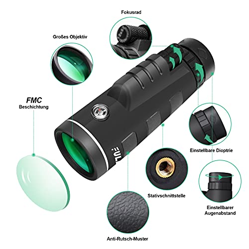 FULLOVE Monokular Teleskop Fernglas Fernohr Zoom HD Telescope Monoscope Erwachsene Kinder Student mit Handyhalter Stativ…