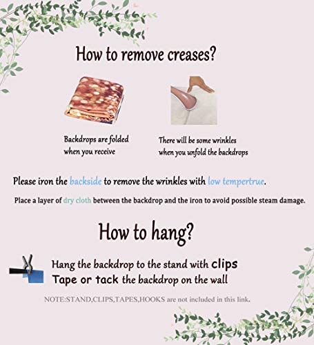 【Warme Tipps】: 1. Nicht wasserdicht. Nicht mit Wasser in Berührung bringen. 2. Immerhin ein Hintergrund im Lieferumfang enthalten, kein Ständer; Paper wird gefaltet verschickt. 3. Verwenden Sie Klemme, Nägel oder Klebeband an der Wand. 4. Hier sind Möglichkeiten, Falten zu reduzieren: Wenn nötig, bügeln Sie bitte die Rückseite (nicht die Bildseite) mit niedriger Temperatur, um die Falten leicht zu reduzieren. Um mögliche Dampfschäden zu vermeiden, legen Sie eine Schicht trockenen Tuch zwischen den Hintergrund und das Bügeleisen.