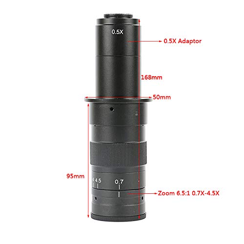 180X C-MOUNT-Objektiv: Arbeitsabstand: 100 mm Zoom-C-Mount-Objektiv 0,5X C-Mount-Adapterzoom-Verhältnisse: 6,5: 1 Objektive Vergrößerungsstärke um 0,7 – 4,5X (ca. 10 – 180X uff dem Strafanzeige) Größe: 180 mm (L) * 50 mm ( DIA) Gewicht: 500 g