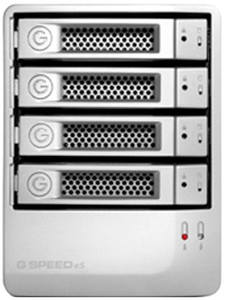 Mit G-SPEED-eS-RAID-Lösungen verfügen Anwender im Segment Content-Creation über hervorragende Leistung, hohe Speicherkapazitäten und den ausfallsicheren Betrieb zu einem beispiellos niedrigen Zoll pro Gigabyte. Das kompakte und flüsterleise Laufwerk G-SPEED eS verfügt über einen 3Gbit-eSATA-Anschluss und vier Hitachi-7200-U/min-3Gbit-SATA-Festplatten, die im laufenden Betrieb ausgetauscht werden können. Bei der Verwendung mit dem G-TECH-RAID-Controller unterstützt ein einzelnes G-SPEED-eS im Leistungsmodus (RAID 0) spielend die unkomprimierte 8-bit-, 1080/60iHD-Videoaufnahme und -wiedergabe. Zwei G-SPEED-eS-Laufwerke im ausfallsicheren Modus (RAID 5) stützen 10-bit, 1080i und mehr! In einer einzigen Workstation können bis zu vier G-SPEED-eS-Module betrieben werden, wodurch bis zu 48 TB Speicher mit über 600 MB/s zur Verfügung stehen. Das Ablegen unkomprimierter Multi-Stream-SD- und -HD-Produktion ist nun einfacher und erschwinglicher als je zuvor!