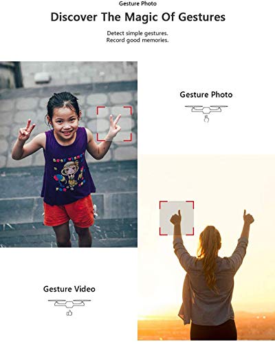 4K HD-Kamera – Ausgestattet mit einer ultrahochauflösenden 4K-Kamera mit einer maximalen Zerteilung von 4096 x 2160P, mit der Sie Momente am Himmel mit einem aufregenden Erlebnis festhalten können. Ausarbeiten Sie der Kamera das V-Zeichen, die Mini-Drohne nimmt automatisch ein Umwandlung oder Video auf und ermöglicht Ihnen das einfache Aufsaugen von Selfies.