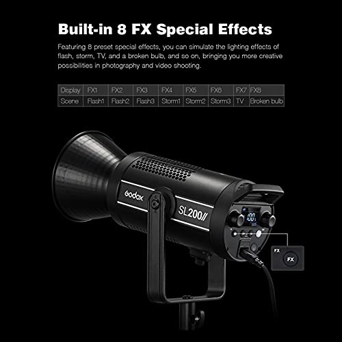 🍃 |Verbesserte Leistung|: Der Godox SL200W II verfügt über 74.000 Lux bei 1 m mit dem Reflektor und erzeugt ein beeindruckendes helles Licht. Mit Dimmen von 100% auf 0% können Sie Lichtflexibilität in verschiedenen Szenen erreichen.