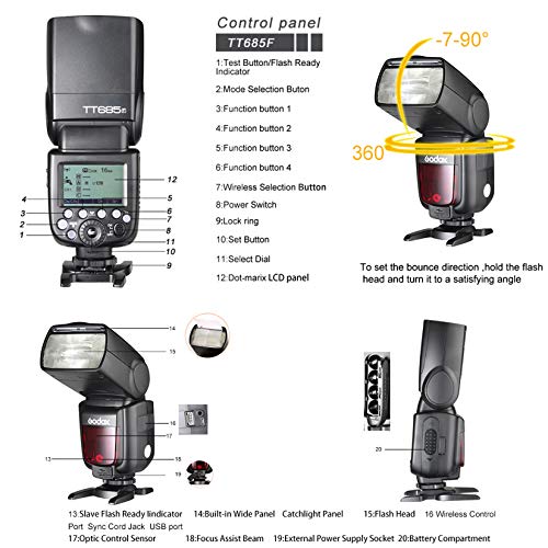 Godox TT685F HSS TTL GN60 Blitzgerät Kompatibel Speedlite für Fujifilm Kamera Fuji X-T2 X-T1 X-T1 X-T1 X-Pro1 X100F