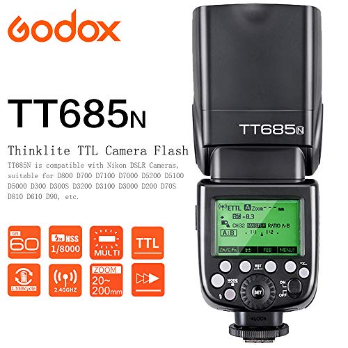 GODOX TT685N TTL Blitz GN60 1/8000 HSS Blitzgerät Speedlite mit X1T-N Trigger Auslöser für Nikon Kameras