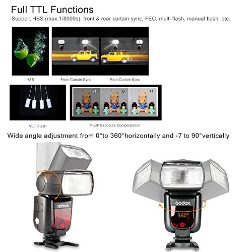 Volle TTL-Funktionen: Unterstützung anstelle TTL-Autoflash, 1/8000s hoch Geschwindigkeit mergen, Vorderseite und Heckvorhang mergen, Blitz Belichtungskorrektur, Blitz Belichtungssperre, Modellierblitz, Steuerung über den Menübildschirm der Kamera, Multi-Blitz usw. 2,4G Wireless-Übertragung mit Sphäre-in-One-Funktionen und 100 m weiterer Übertragung, Optische Übertragung bei gleichmäßiger Ausleuchtung und stabiler Leistung.