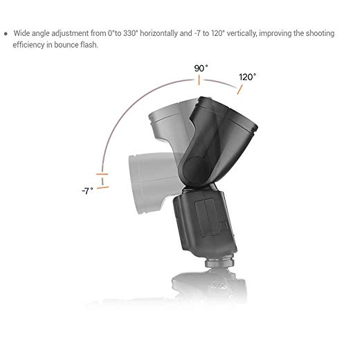 👍 【Zahlreiche Funktionen und einstellbarer Winkel】 Kompatibel mit Canon E-TTL II Automatikblitz, Handblitz, 1/8000 Hochgeschwindigkeitssynchronisation, FEC, FEB, FEL, Synchronisation des zweiten Vorhangs usw.; Der Blitz hat einen Zoombereich von 28 bis 105 mm; Großer Einstellwinkel von 0 ° bis 330 ° horizontal und von -7 bis 120 ° vertikal, wodurch die Effizienz der indirekten Blitzaufnahme verbessert wird.