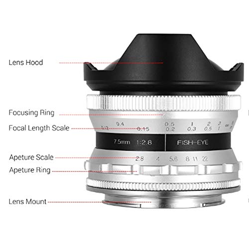 Artikeltyp: Spiegelloses KameraobjektivMaterial: Aluminiumlegierung + optisches GlasGewicht: Ca. 415 g Brennweite: 7,5 mm
