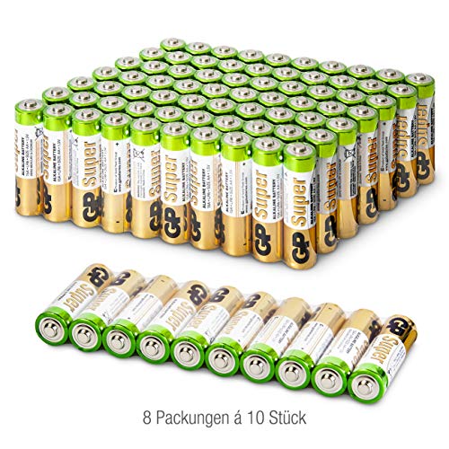GP Batterien AA 1,5V Super Alkaline Longlife G-TECH Technologie, Vorratspack mit 80 Stück Mignon AA Batterien