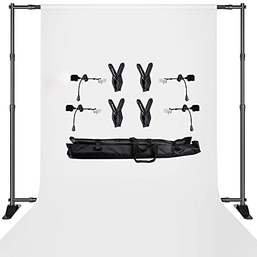 AUSGEZEICHNETES MATERIAL -Hergestellt aus reinem Metall,ist es langlebig und korrosions-und rostbeständig.Das Design der Halterung ist sicher und nicht leicht zu schütteln.Die maximale Belastung der Querstange beträgt 4 kg.Der Hintergrundrahmen selbst kann mit einem Hintergrundtuch aufgehängt werden,und das Kit enthält 4 Hintergrundclips,um das Hintergrundtuch zu stabilisieren.