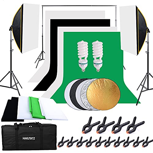HAKUTATZ® Profi Fotostudio Set 4X Hintergrund Lampenstativ 5-in-1 Reflektor Fotografie Softbox mit Schutztasche Hintergrundsystem