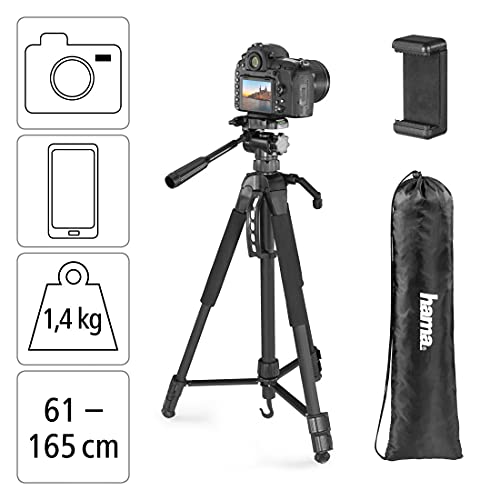 Hama Kamera Stativ Action 165 3D (Kompaktes Fotostativ inkl. Handy-Halterung, Tripod mit 61-165cm Höhe, Dreibeinstativ mit 3-Wege-Kopf, Kamerastativ mit Tasche Angemessen für Canon/Nikon/Sony) schwarz Kompaktes Dreibeinstativ aus Aluminium für wackelfreie Bilder aus jeder Position. Das leichte Kamera Stativ (1,4 kg) bietet durch feststellbare Querstreben, Gummifüße und Spikes einen sicheren Stand auf weichem oder rutschigem Boden. Es ist ideal für Städtetrips oder Ausflüge und eignet sich als Reisestativ. Das Tripod kann anpassbar eingesetzt werden dank der Auszugshöhe von 61-165 cm. Das Stativgewinde der Schnellwechselplatte mit 1/4 Ertrag (6,4 mm Standard-Gewinde) ist brauchbar für Kameras, Action-Cams und Spektive. Das Stativ kann mit einer Spiegelreflex- oder Systemkamera sowie mit einem Smartphone eingesetzt werden. Durch die mitgelieferte Handy-Halterung können Videos im Hoch- oder Querformat für Youtube oder Tiktok gefilmt und Fotos für Instagram oder Spchat geschossen werden. Auf Reisen bieten die rutschfesten Schaumstoffgriffe einen Abschirmung vor Kälte. Außerdem glänzt das Kamerastativ durch seinen fixierbaren 3D Neiger mit Griff, die integrierte Nivellier-Libelle und Wasserwaage, den Beschwerungshaken und die 4kg Traglast. Die Beinlänge wird durch Schnellklemmen eingestellt, die Mittelsäule kann durch eine Kurbel verstellt werden. Für Hobby Fotografen ist dieses Reise-Stativ das ideale Einsteiger-Modell. Das Videostativ bietet dank seiner professionellen Kalibrierung alles was man zum Filmen oder Ablichten bei Ausflügen in Städte, an den Strand oder See benötigt. So macht das Reisen noch mehr Spaß. Technische Details Farbe: Schwarz Farbton: Schwarz Produktbereich: Schaubild & Video Rangfolge: Hama Star Gewinde/Anschluss: 1/4″ (6,4 mm) Art: Dreibeinstativ Bein-Segmente: 3-teilig (2-fach ausziehbar) Haltegriff: Plastikgriff Material: Aluminium Max. Belastbarkeit: 4000 g Stativkopf: 3-Wege-Kopf Zusatzfunktionen: Nivelliereinrichtung Gewicht: 1400 g Höhenverstellbarkeit Mittelsäule: verzahnte Mittelsäule über Kurbel Max. Profilstärke: 23 mm Min. Höhe – Max. Höhe: 61 -165 cm Packmaß: 61 cm Einsatz: Schaubild, Video (3D) Empfohlene Anwendung: Schaubild-/Video