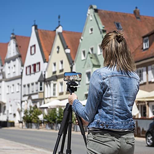 Fotostativ inklusive Handyhalterung: Einfach Smartphone am Handy-Halter abstützen und Indoor oder Outdoor Videos im Quer- oder Hochformat drehen