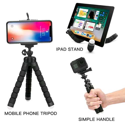 Das verstellbare Design der Octopus-Beine ermöglicht es Ihnen, das Stativ auf einem Flugmaschine oder einer Abschrägung zu platzieren, oder es auf einem kleinen Baum und Pfosten zu wickeln. Die verstellbare und schnell lösbare Handyhalterung hält Ihr Telefon zäh.