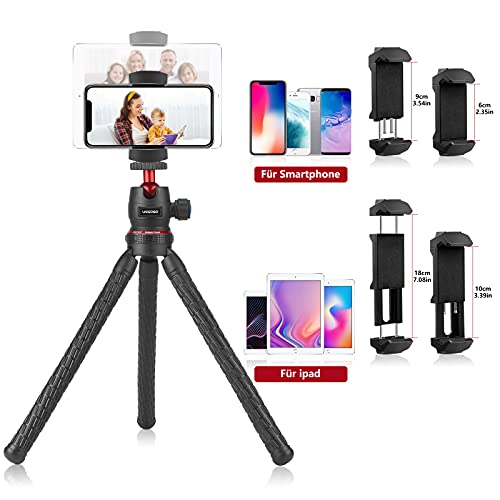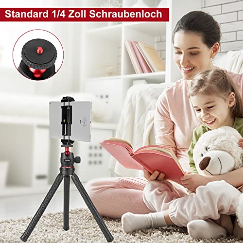【Umfangreiche Kompatibilität】 Kamera stativs nehmen 1/4 Verzinsung Schraubenloch als der Installation Verbindungsanschluss. Es sinnvoll sich für Kamera, Camcorder, DV, iPad, Smartphone usw. Kompatibel mit 5,5 bis 9,0 cm und Tablet/iPad von 11,5 bis 19,5 cm. ideal für Selfies, Gruppenfotos, YouTube-Videoaufnahmen, Live-Streaming, Vlogging und stabile Stativaufnahmen.