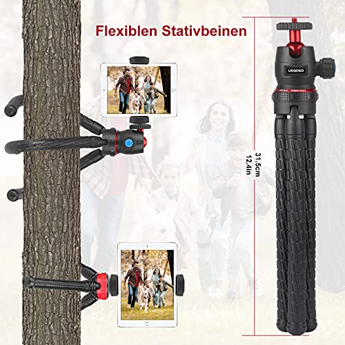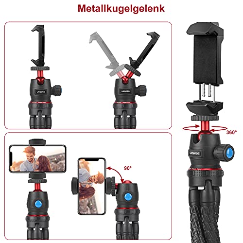 【Super Flexiles Stativ】 UEGOGO handy stativ mit unglaublich flexiblen Stativbeinen, die es Ihnen ermöglichen, Ihr Telefon & Kamera überall anzubringen. Es kann alles erdenkliche greifen, wie z.B. ein Geländer, einen Ast, ein Fahrrad, eine Stange, einen Baum, einen Stuhl oder jeden anderen Ort. Sie können verschiedene Aufnahmewinkel für bessere Perspektiven erhalten.