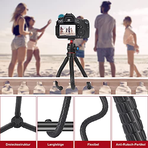 【Tragbar Stativ】 Dieses oktopus mini stativ ist klein und wiegt nur 500 g, sodass es tragbar genug ist, um es auf Reisen oder beim Gehen zu tragen. Durch die Verwendung von dicker Premium-Aluminiumlegierung und hochdichtem Gummi für unübertroffene Haltbarkeit werden die Beine nicht leicht brechen. Anwendbar für alle Arten von Aktivitäten im Innen- und Außenbereich.