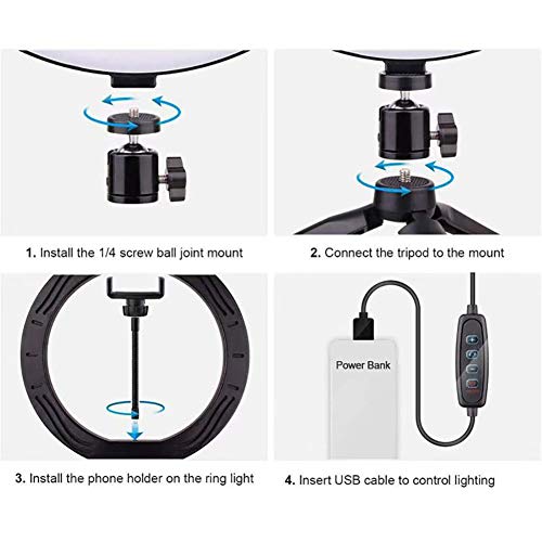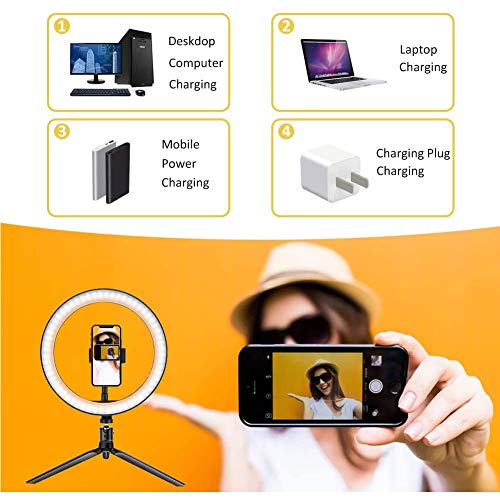 Weit verbreitet: Unser Selfie Ring-Stativ verfügt über einen USB-Anschluss. Sie können den USB-Anschluss an den PC, der Plug and Play anschließen. Die Stromversorgung ist einfach. Dieses Ringlicht kann für YouTube-Videos, Echtzeit-Streaming, Makeup, Desktop, Selfie, Porträt, Wolg, Makeup usw. verwendet werden.