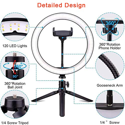 Leistungsstarkes LED-Ringlicht: 10-Aufwand-LED-Ringlicht, mit Stativ- und Telefonhalter, kann gute Beleuchtungseffekte für Ihr Make-up, Selfie, VLOG, YouTube-Videoschießen, Fotografiebeleuchtung, Porträtfotografie, Video-Chat, Echtzeit-Streaming, Produkte bieten? Show etc. Leichtes und tragbares Design, es kann im täglichen Leben weit verbreitet sein.