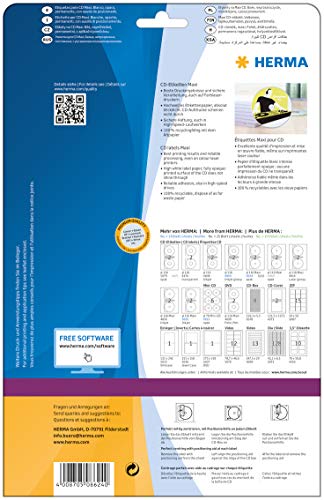 HERMA 8624 CD DVD Etiketten inkl. Zentrierhilfe blickdicht, 10 Blatt, Ø 116 mm MAXI, 2 pro A4 Bogen, 20 Stück, selbstklebend, bedruckbar, matt, blanko Papier Klebeetiketten Aufkleber, weiß