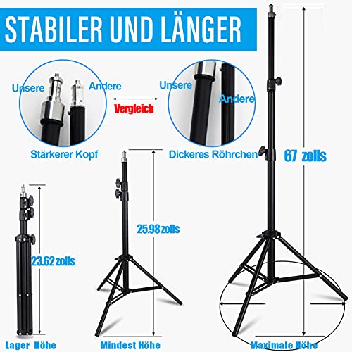 【Professionelles Fotostativ: Stabiler und längerer Stativständer】 Fotostufe matt Eisenstativ und speziell entwickelter 1/4-Schraubenbolzen machen es stabil und robust, um Ihre Last im Gleichgewicht zu halten. Erweiterbar von 21,7 „auf 67“, und die Gesamthöhe beträgt bis zu 82 „, zumal das Ringlicht hinzugefügt wurde, um Ihre unterschiedlichen Höhenanforderungen zu vollenden.