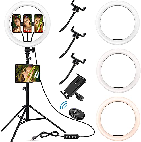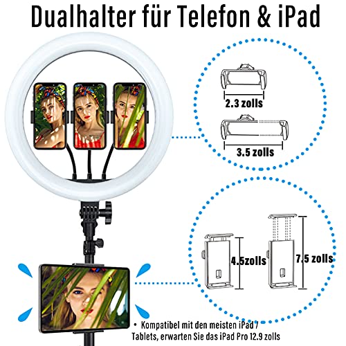 【3 Handyhalter und 1 Telefon- und Tablettenständer】 Dieser Selfie-Lichtring hat 4 Telefonringhalter und einer davon ist für die meisten Tablets geeignet! Der Tablet-Halter ist kompatibel mit iPad 1-8 / mini 1-5 / Pro 9.7, 10.5, 11 / Air 1-3. (Hinweis: Nicht kompatibel mit iPad Pro 12.9) Die Telefonhalter sind kompatibel mit iPhone 11, 11 Pro, X, Xs, Xs Max, 8 Plus, 8, 7, 7 Plus, 6, 6s, 6s Plus 5, 5s, 4 , 4s / Samsung Note 8, S8 / LG / HTC usw.