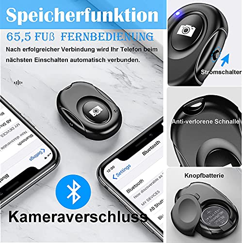 【Kommen Sie mit einem Bluetooth-Fernauslöser zum Aufnehmen von Fotos.】 Auch wenn Sie 65,5 Fuß entfernt stehen, machen Sie sich keine Gedanken darüber, wie Sie den Auslöser Ihres Telefons drücken müssen. Dieser drahtlose Bluetooth-Auslöser mit Speicherverbindung kann Ihre Hände beim Aufnehmen von Selfies / Familien- / Gruppenfotos befreien ! (Arbeiten Sie nicht mit dem Ringlicht, sondern mit Ihrer Telefonkamera.)
