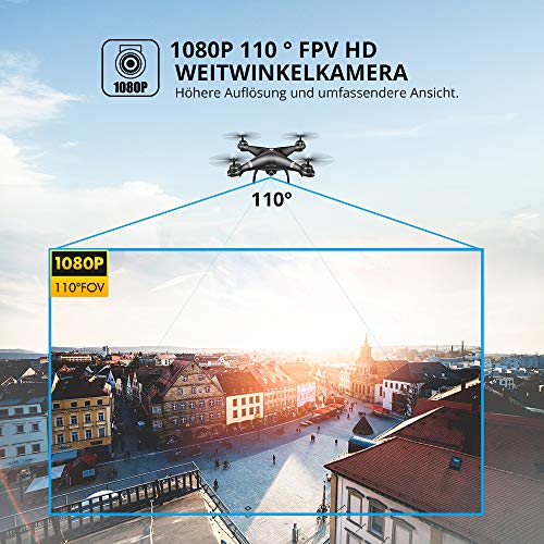 Nehmen Sie den schönen Moment auf: Mit der 1080P 110° HD Weitwinkelkamera bietet sie eine höhere Bildqualität und einen größeren Aufnahmewinkelbereich als herkömmliche 720P-Kameradrohnen. Genießen Sie eine wunderschöne Echtzeitansicht mit der App, die mit einer fliegenden Quadrocopter-Kamera verbunden ist!
