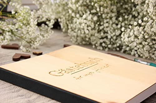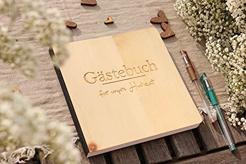 • gravierter Schriftzug am Cover „Gästebuch für unsere Hochzeit“