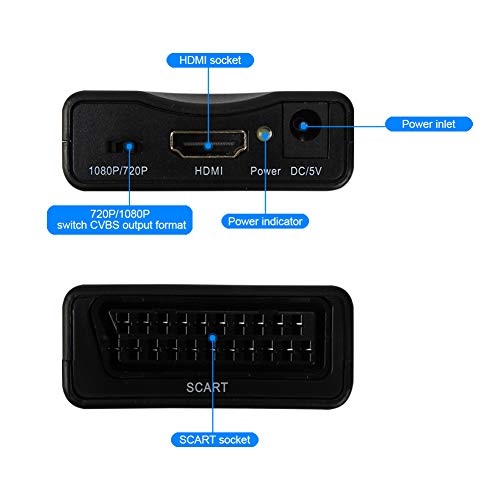 Hugomega SCART auf HDMI Konverter, Scart zu HDMI Konverter Adapter 720P / 1080P Video Audio Wandler für HDTV STB Xbox…