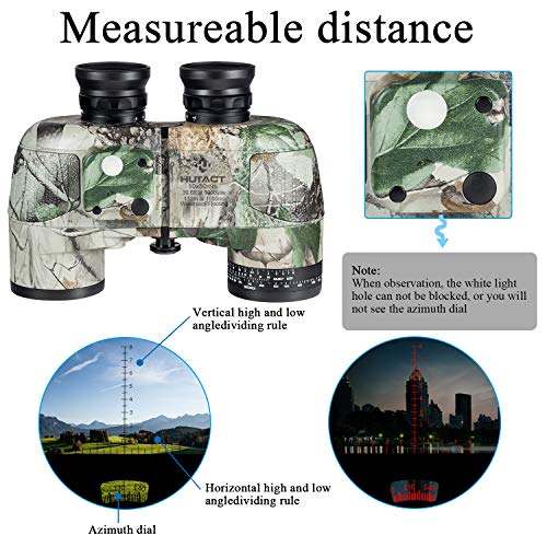 HUTACT Kompakt Military Fernglas für Erwachsene, 10×50 Fernglas für Lange Distanzen, mit Kompass-Messrichtung…