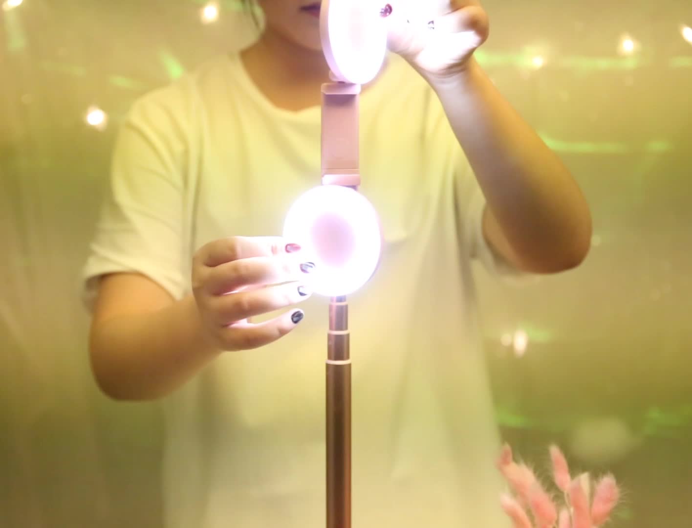 【DOPPELTES SELFIE LICHT】 Die Ringlicht verfügt über eine multifunktionale helligkeits Einstellung, 1 Helligkeit (Exquisite Schönheit) / 2 Helligkeit (Lichte Schönheit) / 3 Helligkeit (Weiche Textur), ein 360-Grad-Rotationsdesign, das das horizontale und vertikale Umschalten des ringlicht winkels ermöglicht Erreiche deinen selfie licht Bedarf