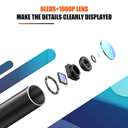 【1080P HD & 6 einstellbare LED】 Die Brennweite beträgt 2 cm ~ 8 cm. Das Endoskop kann den Defekt eines weiter entfernten Objekts erkennen. Darüber hinaus können Sie mit dem hochwertigen Kamerasensor 1080P und 6 einstellbaren LED-Lichtern dunkle Stellen und kleine Bereiche klar erkennen, in die kein Licht gelangen kann. * Dieses Endoskop kann Bilder und Videos aufnehmen.
