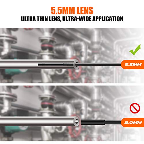 【Handheld-Design und 16,5-Fuß-Kabel】 Das halbstarre 5M-Kabel und der benutzerfreundliche Griff ermöglichen eine einfache Bewegung um Ecken. Seien Sie die Form dessen, was Sie wollen, weit verbreitet in der Fahrzeugwartung, mechanischen Inspektion, Rohrreparatur, Hauswartung und anderen Bereichen.
