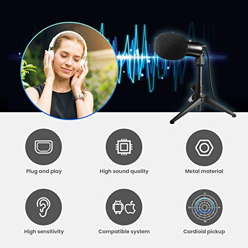 Praktisches und Langlebiges Stativ: Das PC Mikrofon besteht aus hochwertigem Metall Aluminiumoxid, das sturz- und stoßfest ist und belastbar in der Anwendung ist. Das Computermikrofon wird auch mit einem stabilen Metallstativständer geliefert, mit dem Sie die Auflösung vornehmen können Winkel und Höhe passend zu Ihrer Arbeitsposition.Es befreit Ihre Hände und ermöglicht Ihnen, Ihre eigenen Dinge zu tun, während Sie das Mikrofon verwenden.