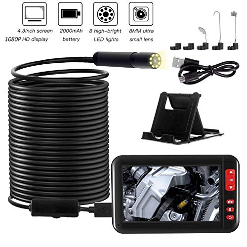 【4.3inch Farbdisplay und 8 mm Objektiv】 4.3inch HD-Bildschirm Endoskop Inspektionskamera ermöglicht sofort Live-Videos und Fotos zu sehen.Vollansicht IPS-Bildschirm können Sie den Bildschirm klar auf die verschiedenen Blickwinkel sehen.Keine Notwendigkeit zur Installation APP.