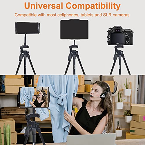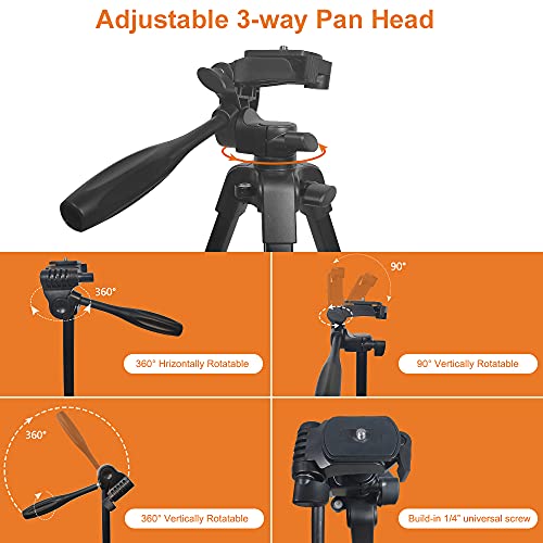 Ausziehbar und Multi-Winkel – Verstellbare Höhe mit Klappverschluss, 4 Abschnitte, Säulenbeine mit Schnellverschluss-Hebelverriegelungen ermöglichen es Ihnen, die Höhe des Stativs in Sekunden von 40,6 cm bis 137,2 cm einzustellen. Der 3-Wege-Pfannenkopf hat separate Verriegelungssteuerungen für jede Bewegung des Kopfes, Schwenken, Neigen und Bewegung von horizontaler bis vertikaler Kameraausrichtung. Es ist schnell einzurichten und passt für verschiedene Aufnahmeumgebungen und fotografische Bedürfnisse.