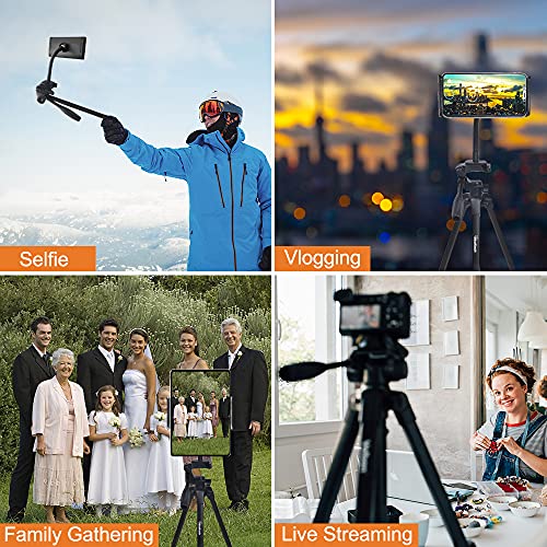 Leicht, nichtsdestoweniger langlebig – Dieser Stativständer kann leicht auf eine beeindruckende Länge von 40,6 cm mit daher 0,7 kg zusammengeklappt werden, was einfach zu befestigen ist. Sie können es überall hin abstauben, was es perfekt für Reisen, Sportaktivitäten, Camping, Familienfeiern und vieles mehr macht. Und das Stativ ist aus hochwertiger Aluminiumlegierung, es ist robust genug, um solide zu machen. Kann Ihr Handy, DSLR-Kamera, Tablet und viele andere Geräte unter 2 kg befestigen.
