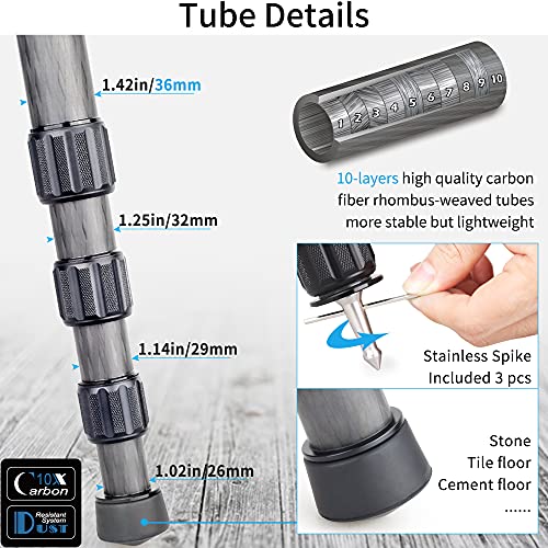 【Ultra stabiles Kohlefaser-Stativ】36/32/29/26mm Rohrdurchmesser Bein,sogar im Überfluss größer als die meisten Stative.Kohlefaser importiert jeder „TORAY“, hergestellt in Japan.Die besten Materialien werden in allen Teilen verwendet,Hauptteile alles Metall hergestellt und über CNC Anodic Oxidation Technologie.Maximale Belastung 35 kg,Welches ist der beste Partner für Ihre Vögel-Beobachten-Ausrüstung.