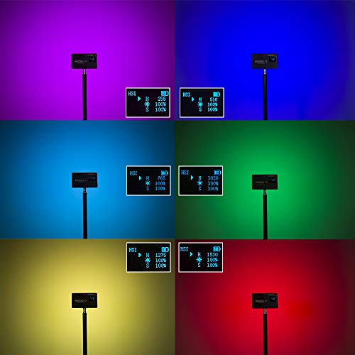 [OLED-Display & Bedienungsfreundlich] – Ausgestattet mit einem OLED-Display sind die Parameter für Batterieleistung / Farbtemperatur / Helligkeit / Szenen / HSI / RGB beträchtlich zu ablesen. Mit zwei Tasten können Sie die Intensität und die Farbtemperatur des Lichts abgesperrt anpassen. Es gibt 10 integrierte Farb- und Lichteffekte als Blitz-, Kerzenlicht- oder Polizei- / Feuer- / Krankenwagen-Notleuchten.