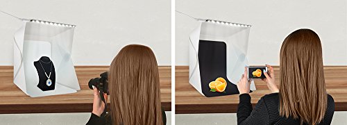 EINGEBAUTE BELEUCHTUNG – das Zelt hat eine oben eingebaute 20 LED Leiste die mit einem weißen, neutralen Licht. Die Leiste wird von einem Micro-USB-USB-Kabel (im Lieferumfang enthalten) versorgt. Sie können ohne weiteres problemlos Bilder auf eine Verkaufs- oder andere Hobbyseite machen.