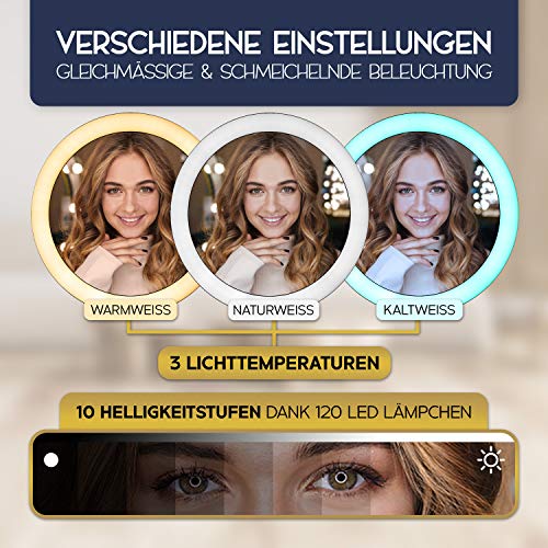 ✨HARMONISCH DIMMBARES LICHT – Sorge für das richtige Funkeln in deinen Augen. Dank 120 LED Lampen, 3 Lichtfarben (kaltweiß, naturweiß, warmweiß) und 10 dimmbaren Helligkeitsstufen erreichst du spektakuläre Lichteffekte!