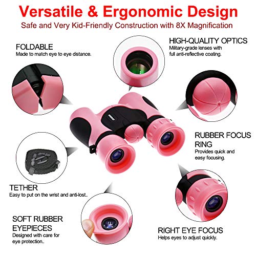 8×21 VERGRÖSSERUNG MIT HOCHWERTIGEN OPTIKEN – Vergessen Sie verschwommene Bilder. Unser kompaktes Fernglas mit Bak-4-Dachprismen liefert gestochen scharfe, klare und farbenfrohe Bilder in hoher Zersplitterung. Der 8×21-Zoom ist perfekt, um die Welt Ihrem kleinen Entdecker 8-mal näher zu bringen. Das kleine Fernglas ist ein großartiges Spielzeug für Jungen und Mädchen, das sie im Freien und bei Sportspielen verwenden können