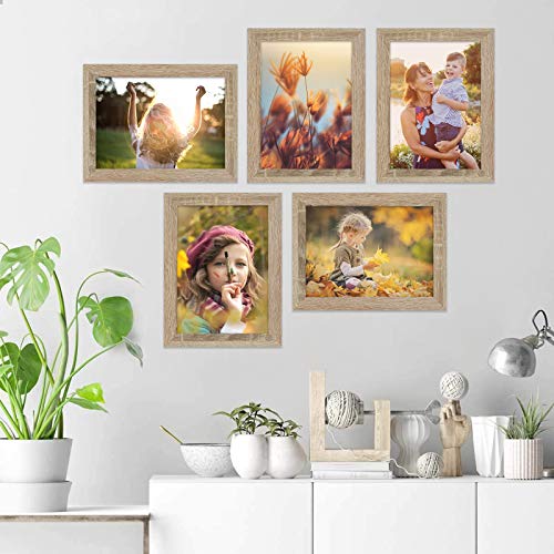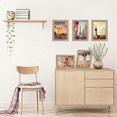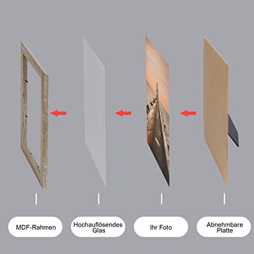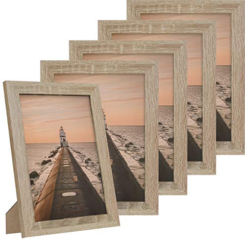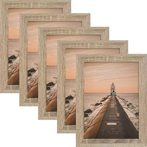5 Stücke Bilderrahmen: Klassischer und rustikaler Bilderrahmen ist aus hochwertigem MDF-Material und klarem Glas, was robust und haltbar ist, bester Begleiter für Familiebilder, Urlaubsbilder und Ausflugsbilder.