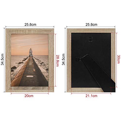 Größe und Farbe: angemessen für Fotos mit 21x 30cm, Bilderrahmengröße (fertige Größe) ist 1.5 x 25.8 x 34.5 cm, Grau und Eiche, zwei Farbe zur Auawahl, Sie können die richtige Farbe für Ihr Zimmer detachieren.