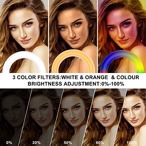 ✲【11 Beleuchtungsmodi Ringlicht】 Für Tageslicht, stufenloses Dimmen von warmem Weiß und kaltem Weiß sind jeweils 5 Helligkeitsstufen einstellbar. 6 Arten von RGB-Farben haben 3 einstellbare Helligkeitsstufen. Jede Stufe kann 5 Stufen unterschiedlicher Weißhelligkeit auf eine neue Farbmischung erhöhen. 2 Andere Modi: Blitzmodus und Atemmodus. Kalawen selfie Licht kann fast alle Ihre Farb- und Helligkeitsanforderungen abdecken.