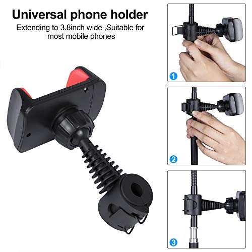 ✲【USB-betriebenes LED-Ringlicht Zubehör】 1 Desktop-Stativ, 1 Bluetooth-Fernbedienung, 2 Handyhalter, ein verstärkter Anti-Rutsch-Gurt können das Telefon fixieren, ohne das Telefon zu aufkratzen. Die maximal anwendbare Telefonbreite: 9 cm