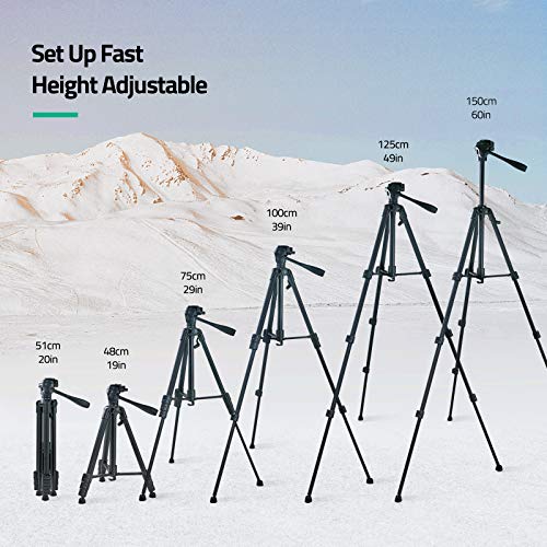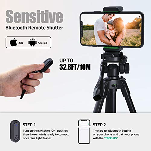 Kamera Stativ 150cm,TECELKS Aluminium Stativ mit Fernbedienung, Handyhalter and Tragetasche für Smartphone DSLR Canon…